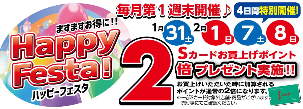 ハッピーフェスタ(Sカードお買上げポイント2倍)実施