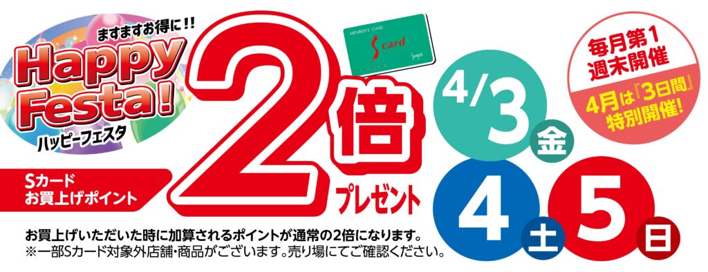 ハッピーフェスタ(Sカードお買上げポイント2倍)実施