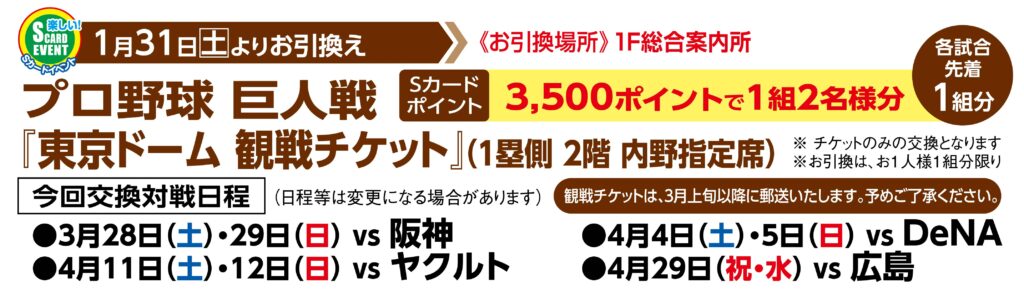 プロ野球 巨人戦「東京ドーム 観戦チケット」お引換え